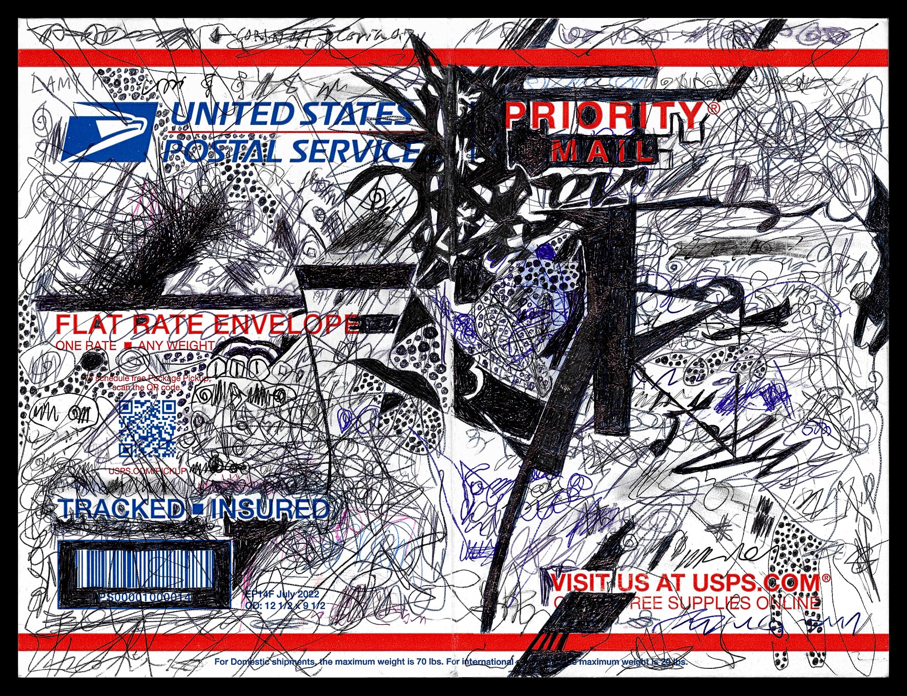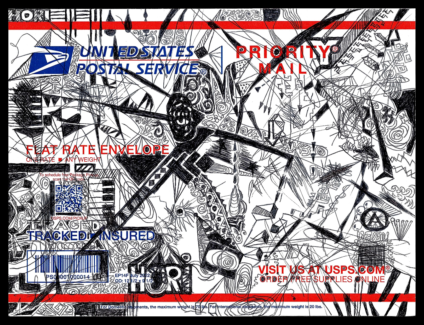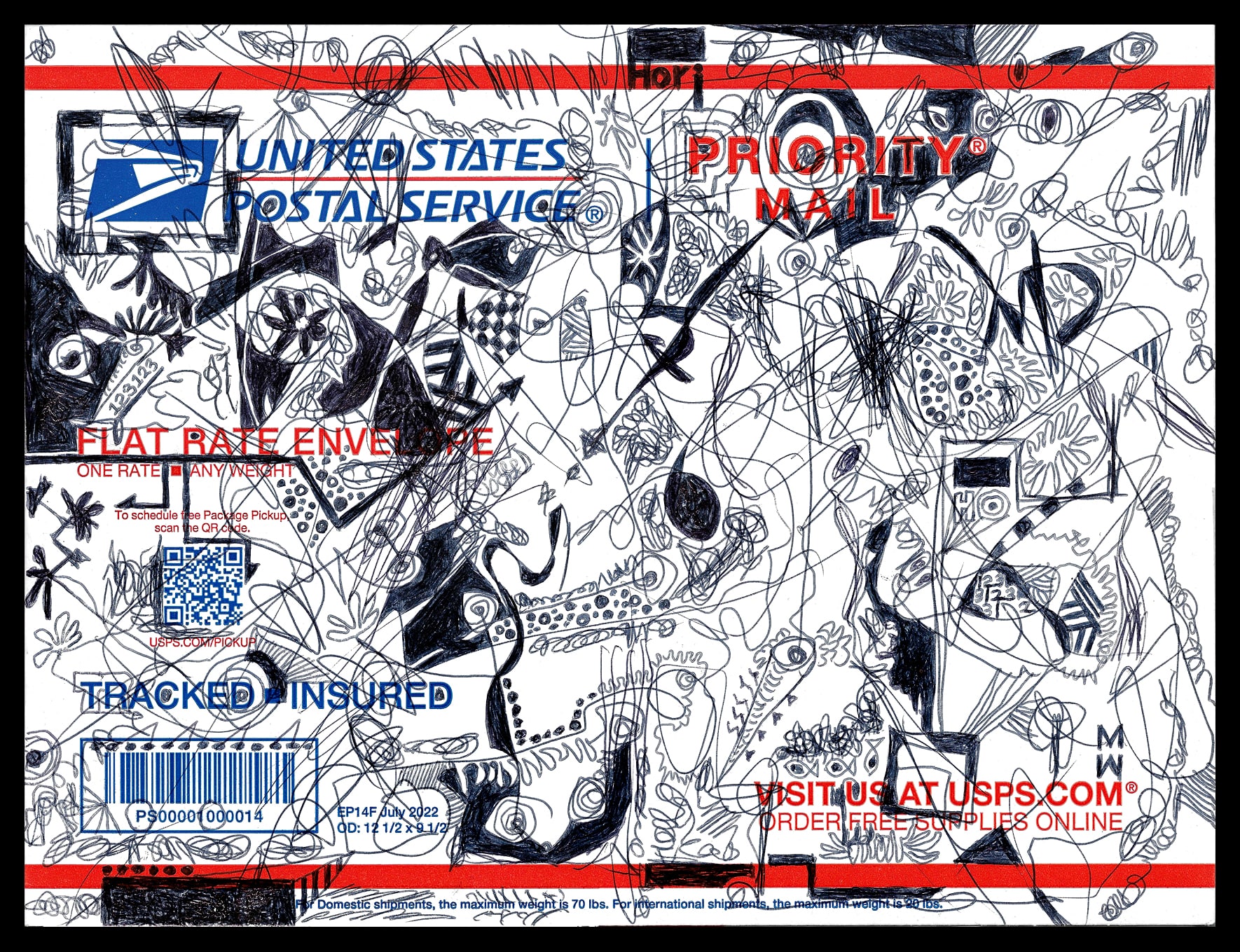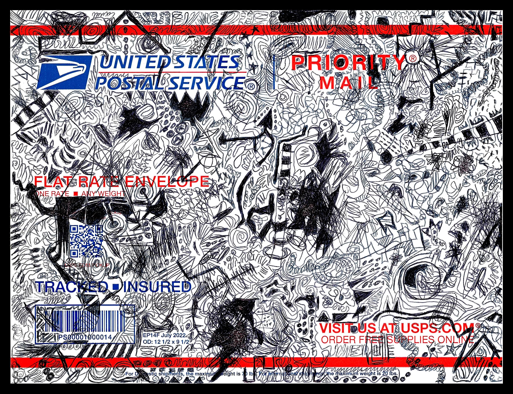 The USPS flat rate mailing envelopes that have some letters on already in my bookshelf, was perfect for doodles. Doodling on a completely blank white paper goes against that spirit.